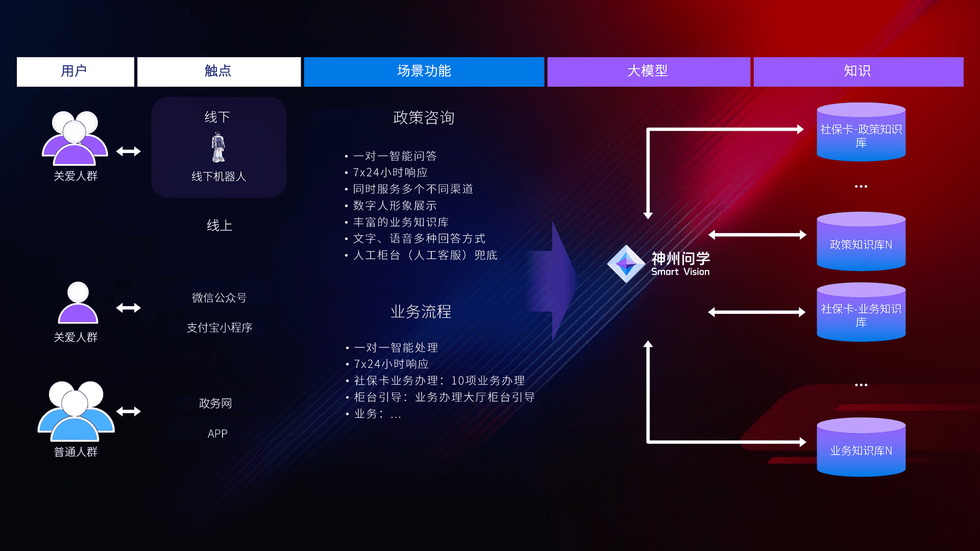 • 线上线下全覆盖:线上提供微信公众号、、支付宝小程序、、、、政务网、、、app多种渠道,,,与线下机器人形成完整服务体系。。。